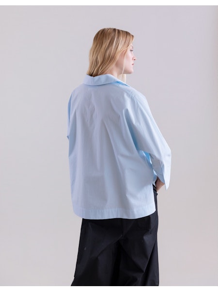 Camisa en tejido 100% algodón con estampado de tucanes. Manga tres cuartos y bajo asimétrico.
