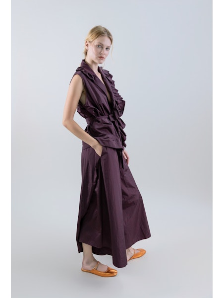 Falda- pantalón de taffeta en color marrón con cintura elástica.