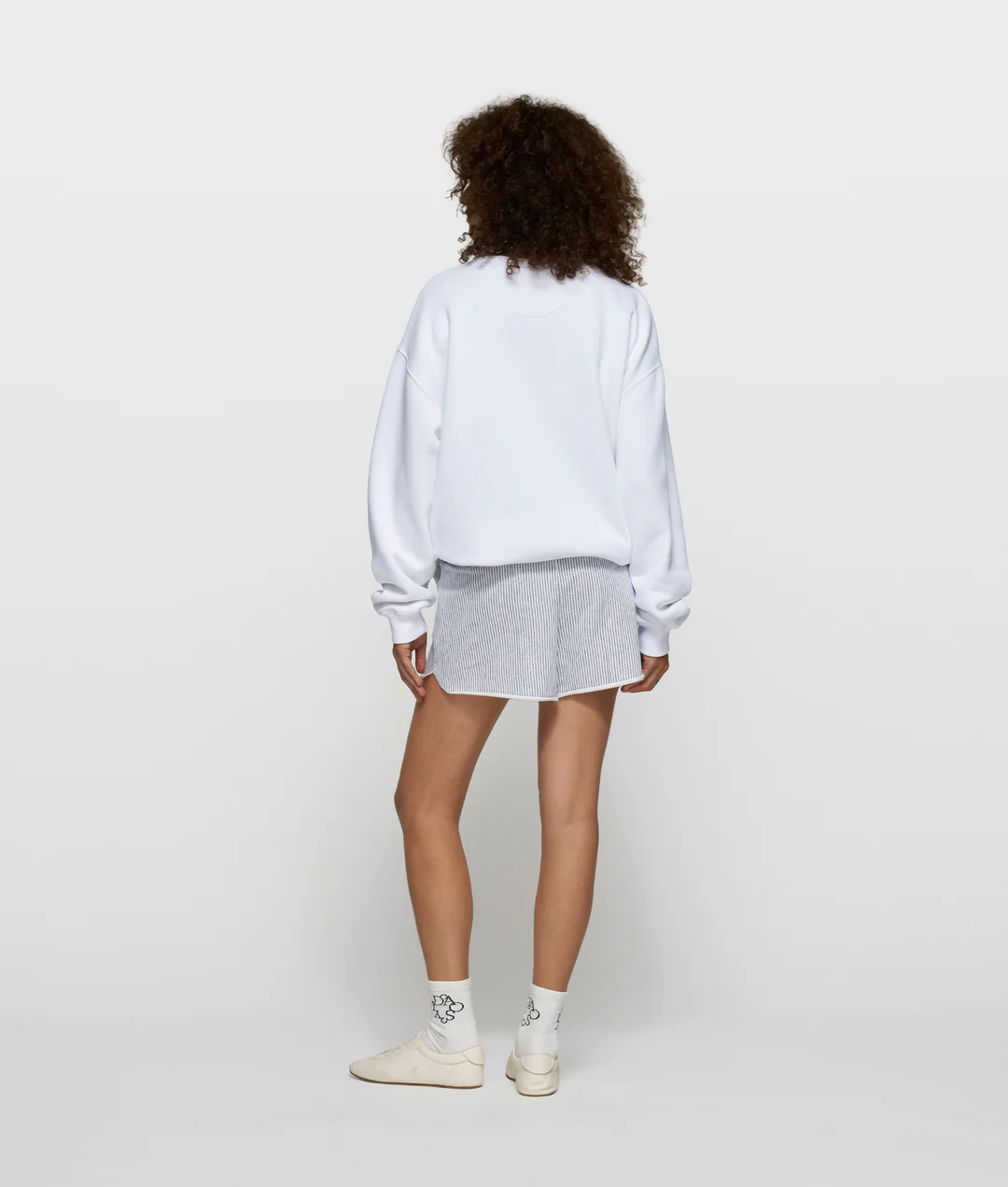 Pantalón corto de rayas realizado en tejido de algodón orgánico suave certificado por GOTS. Con una cintura elástica con cordón, bolsillos laterales, un acabado de borde crudo en el dobladillo y un bordado con monograma ’10’ debajo del bolsillo lateral izquierdo.
