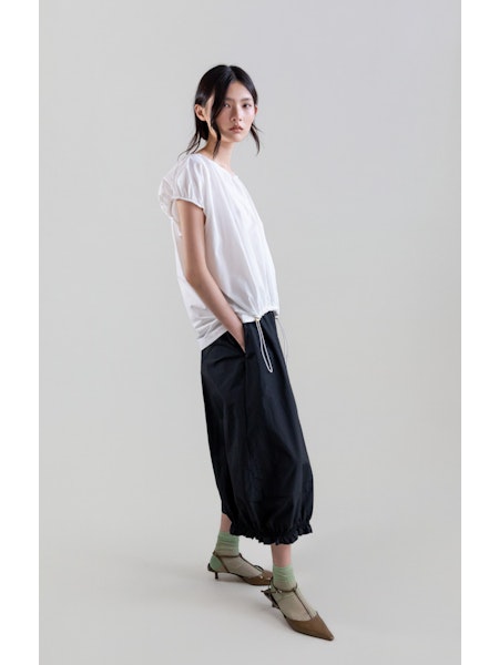 Top de manga corta y bajo ajustable en color blanco. Confeccionado en tejido de nylon y algodón.